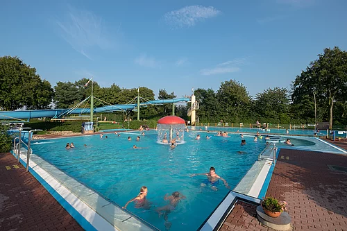 Das Freizeitbad lädt von Mai bis September zum Schwimmen ein.