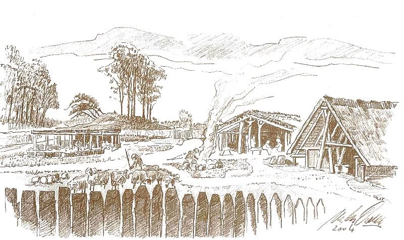 Machen wir einen kleinen Zeitsprung von noch einmal 1000 Jahren, so um 4700 v.Chr. . Erste Nachweise von landschaftsverändernden Rodungen und Feuerstellen werden im Albersdorfer Raum in der Flur Falloh nachgewiesen. In südlicheren Teilen Europas ist der Mensch schon lange sesshaft geworden. Jetzt beginnen allmählich auch hier die Menschen durch Ackerbau und Viehzucht ihren Lebensunterhalt zu bestreiten. Der Übergang hierzu dürfte aber auch in einem Zeitraum von weiteren 1000 Jahren stattgefunden haben.